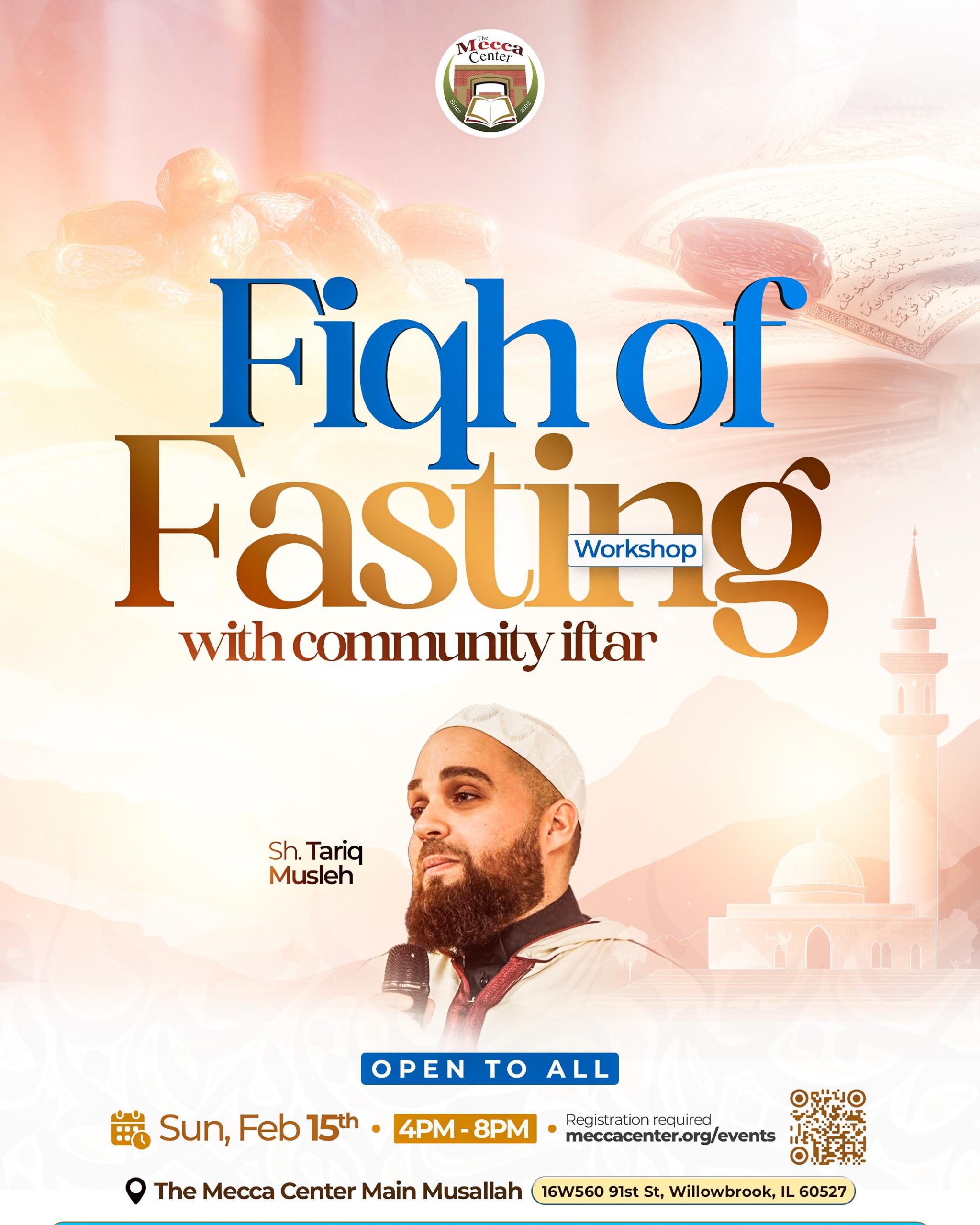 As Ramadan approaches, take time to deepen your understanding of fasting—its rulings, purpose, and spiritual impact.Join Sh. Tariq Musleh for our Fiqh of Fasting Workshop, followed by a community iftar...