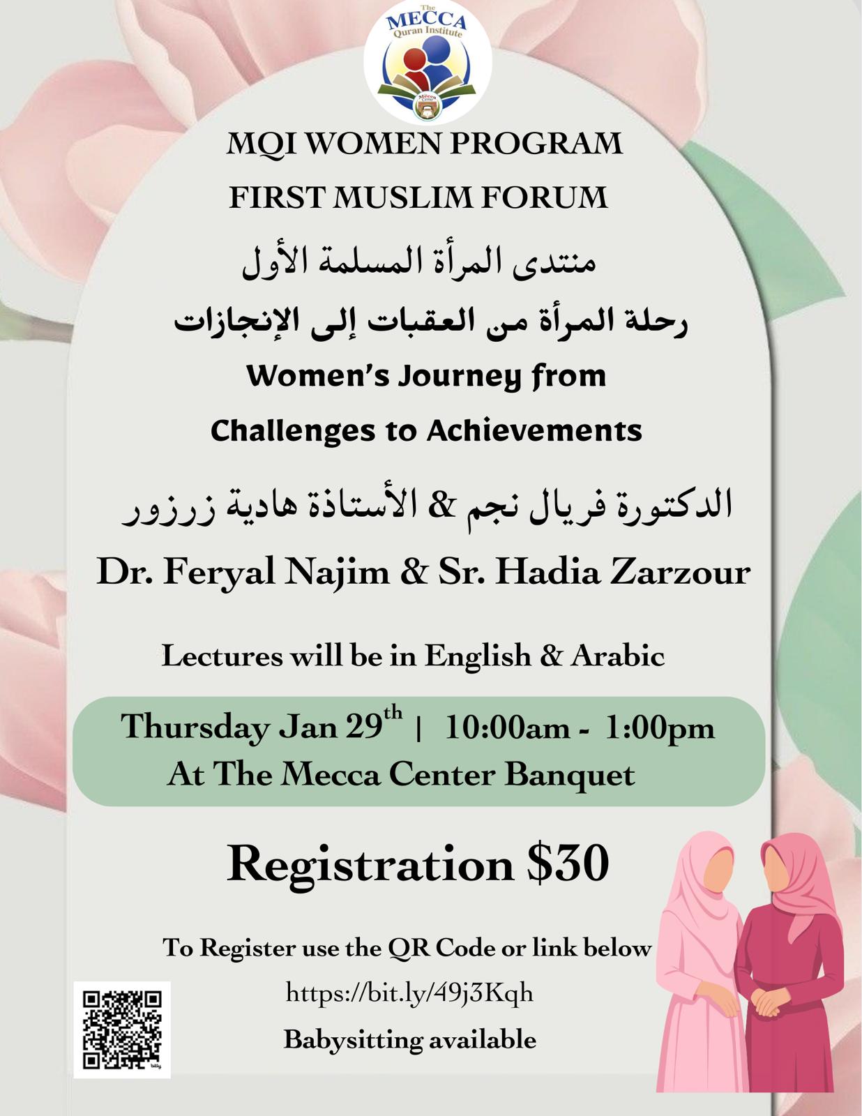 Join us for the MQI Women Program’s First Muslim Forum 🌸Women’s Journey: From Challenges to Achievements An inspiring bilingual forum featuring Dr. Ferial Najm and Sr. Hadia Zarzour, exploring resilience,...